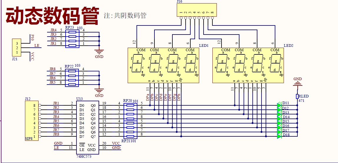 74HC573是一个锁存器,当LE处于高电平的时候,输入和输出的信号是同步的,用在数码管主要用来增大驱动能力。