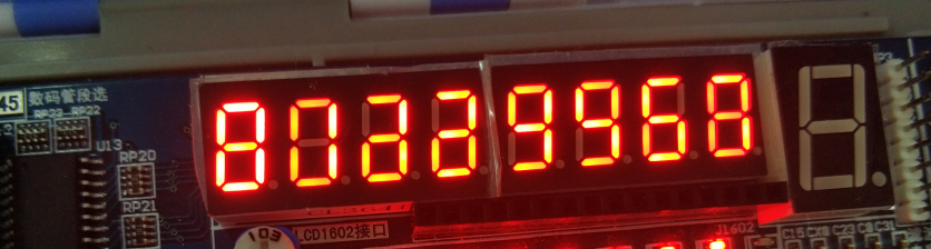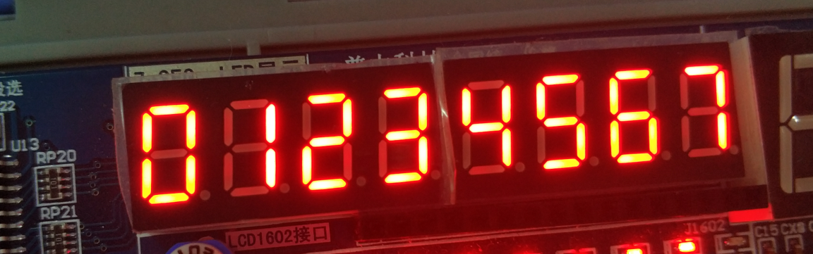 如图,这是八个八段共阴数码管,意味着高电平点亮,数码管的段显通过74HC573连接到单片机P1口