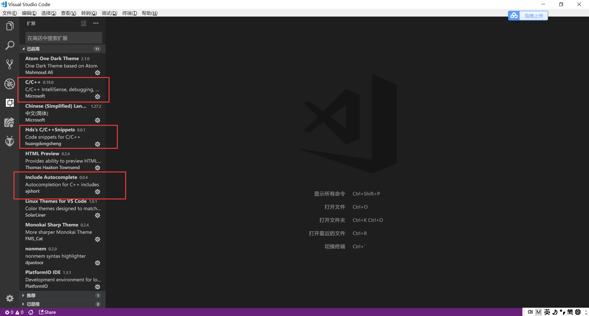 搜索下图中框住的插件并安装,这些插件可以提高写代码的效率